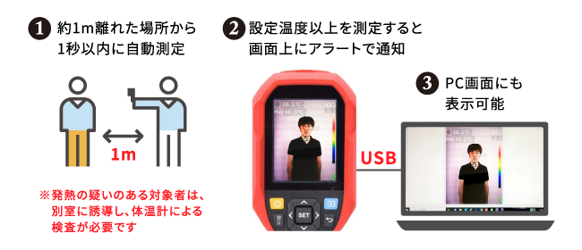 混雑した公共エリアの中で発熱者を発見して追跡することができ、税関、空港、学校、病院などの検査や検疫のための場所で広く使用できます。